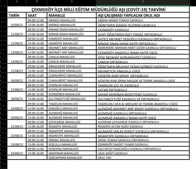 Okullardaki aşı uygulama takvimimiz ekteki gibidir."