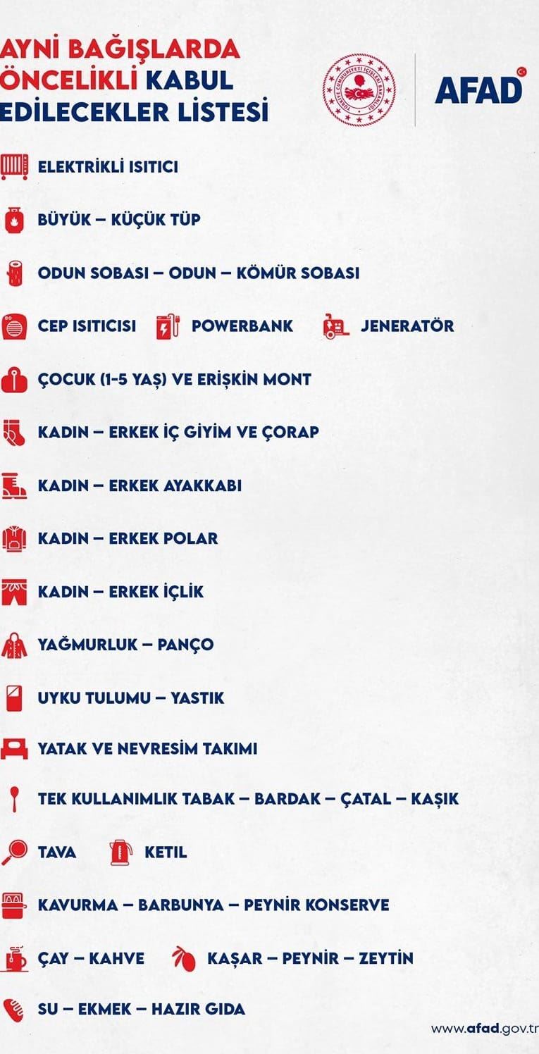 Ayni bağışlar için öncelikli kabul edilecekler listesi ise şu şekilde belirlendi: