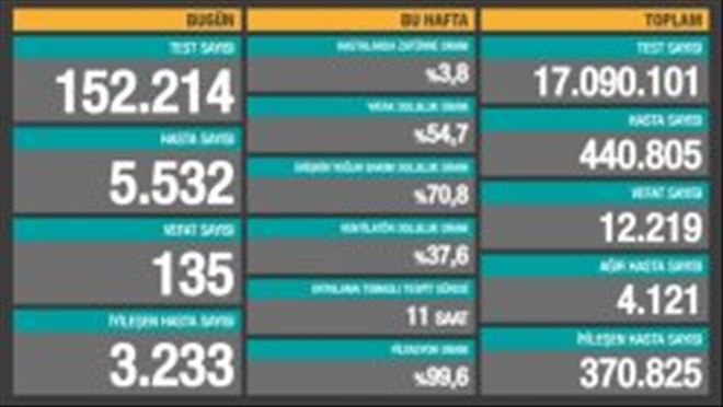 Koca´nın açıkladığı tabloya göre bugün 5 bin 532 yeni hasta daha tespit edildi.
