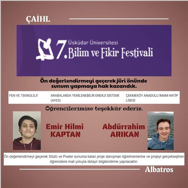Çekmeköy Anadolu İmam Hatip Lisesi 7 bilim Ve Fikir Festivali´nde jüri Önünde Çıkacak